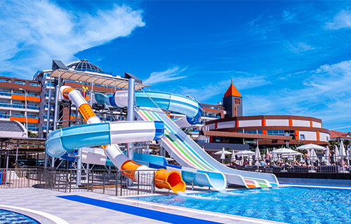 RezensionDer Premium Aquapark bietet einen Sommer voller Spannung und Adrenalin für Erwachsene und Kinder! Dieser aufregende Aquapark, der auf einer Gesamtfläche von 1500 Quadratmetern errichtet wurde, verfügt über insgesamt 6 Rutschen, 3 große und 3 kleine Rutschen. Unsere Gäste jeden Alters können den Premium Aquapark zwischen dem 01. Mai und dem 15. Oktober genießen....