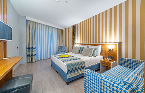 Standart odalar bir çift kişilik, bir tek kişilik yatak veya tek kişilik iki tane yatak mevcuttur. Çocuklar için açılır küçük kanepe ve açılır tekli koltuk, klima, duş, WC, TV, uydu yayını, telefon, klima, para kasası, sıcak içecek seti, saç kurutma makinesi, balkon, laminant parke zemin, mini dolap (su-soda) Oda temizliği günlük olup, yatak tekstili ve havlular haftada 3 kez değiştirilir. *Evcil hayvan kabul edilmemektedir. Odalarımızın maksimum kapasitesi 3 yetişkin ve 1 çocuktur.