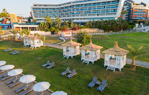 On the eastern beach of the Fuğla Peninsula in the Türkler Neighborhood, Aynalı Göl Bay, an ancient harbor dating back to 200 BC, Lonicera Premium beach offers an unforgettable holiday experience with its perfect Mediterranean Sea blending blue-green colors, unique sunrise view and enjoyable activities. With 1 large outdoor pool, jacuzzi and outdoor children's pool, 1 indoor pool, jacuzzi and indoor children's pool, an aquapark with 6 slides and a magnificent beach by the sea, you can enjoy the sun and the sea on sun loungers and umbrellas!